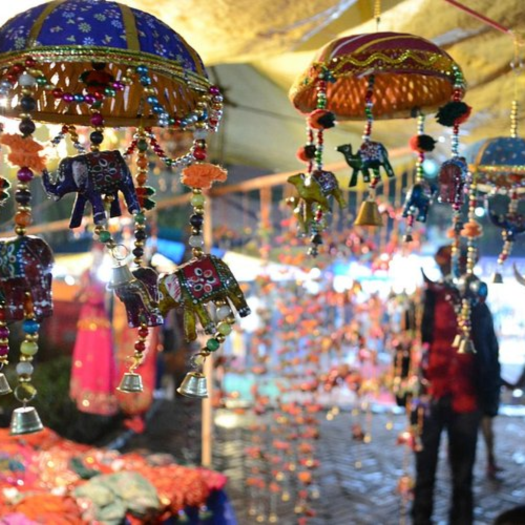 - Browse handicrafts (Rajasthani puppets, Bengali textiles)