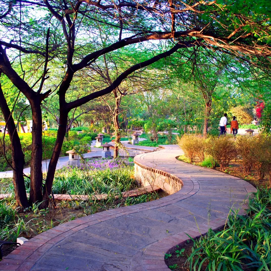 Dilli Haat for seating and flat walkways, India Gate lawns for open space, and Khan Market for calm dining and clean surroundings.